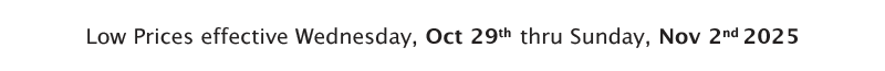 ★ Sale Dates Oct. 29th thru Nov. 2nd ★ See Our Other Low Price Deals Be the first to know aboutour Extreme Values! Get our specials right to your inbox,and get a FREE loaf of bread. SIGN UP NOW