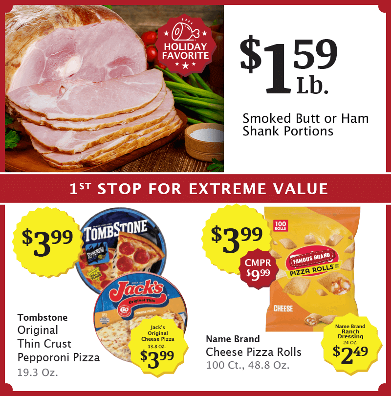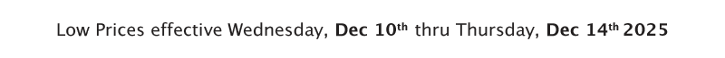 ★ Sale Dates December 10th thru 14th ★ See Our Other Low Price Deals Be the first to know aboutour Extreme Values! Get our specials right to your inbox,and get a FREE loaf of bread. SIGN UP NOW